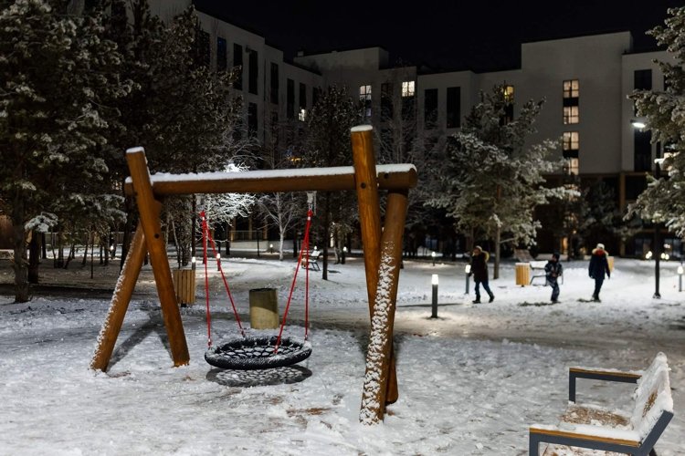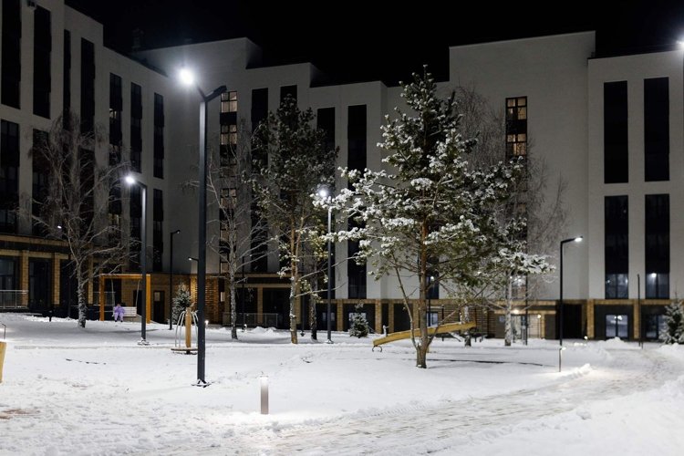 На территории предусмотрены благоустроенные дворы без машин с ландшафтным дизайном, детские площадки, спортивные зоны и колясочные. В квартале также есть места для отдыха и прогулок.
