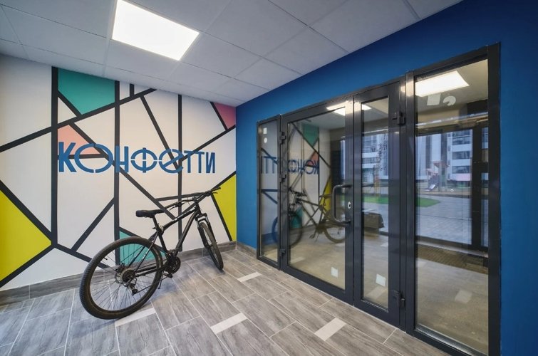Оригинальный дизайн с использованием красочных акцентов и необычных элементов делает каждый вход в квартиру запоминающимся и радует глаз. Колясочные и безбарьерный вход особенно удобны для молодых семей.