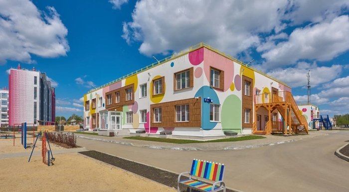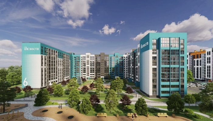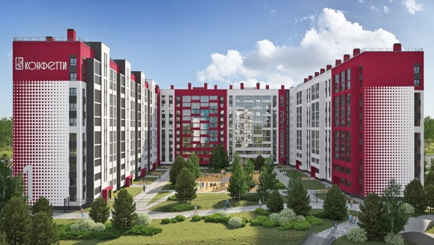 Проект включает детский сад на территории комплекса и собственную прогулочную аллею как зону притяжения для жителей города. На детских площадках юные жители комплекса «Конфетти» смогут играть круглый год. Территория каждого двора огорожена и предусмотрено ландшафтное озеленение.