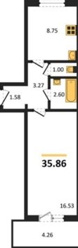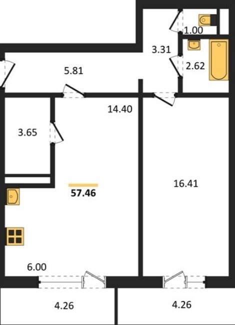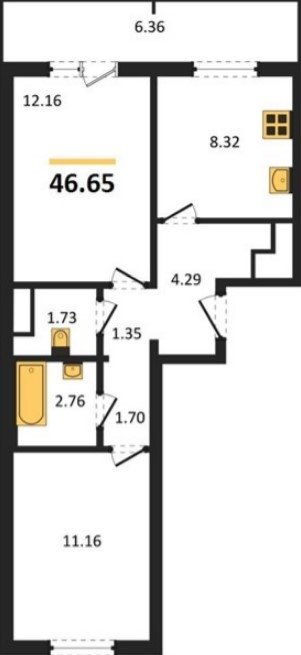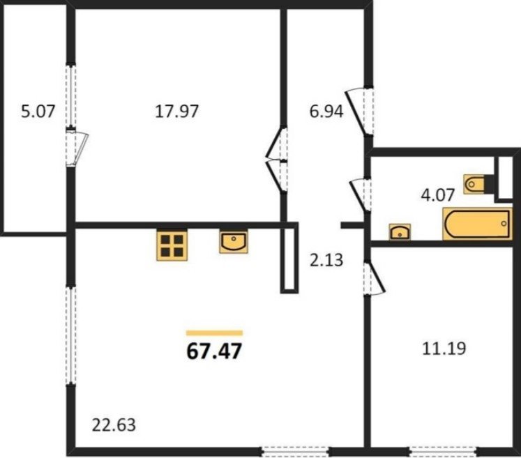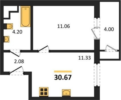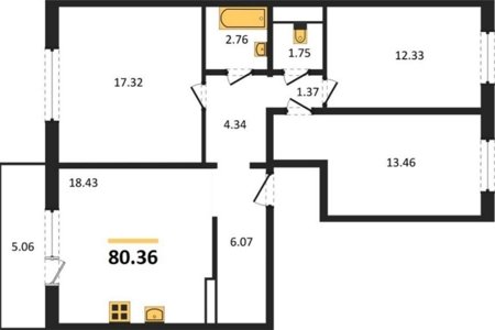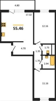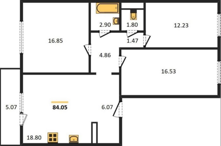 Виниловые обои под покраску, линолеум ПВХ, в санузле на полу керамическая плитка, установлена сантехника, межкомнатные двери, проведены все коммуникации.